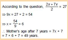 Q.7. The respective ratio between the present ages of son, mother, father and grandfather is 2 : 7 : 8 : 12. The average age of son and mother is 27 years. What will be mothers age after 7 years?